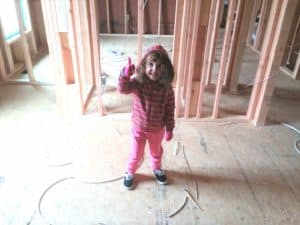 The months betwen being accepted as a Habitat Family and moving into the new home are busy ones. All members of the family participate in accruing the family’s 500 “sweat equity” hours. Young children are not allowed on the building site for safety reasons, but they “post” the family hours on the charts in the Habitat office, help make plans, and can help in planting flowers and similar activities after construction is finished.